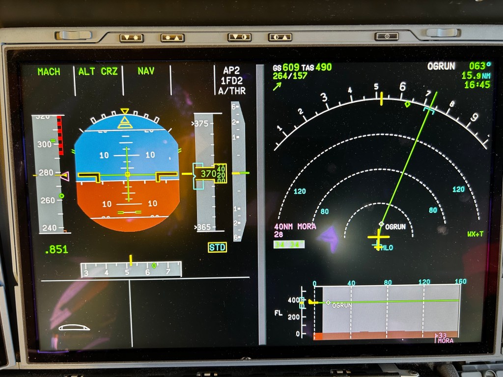 Bienvenidos a bordo, les habla el comandante, mi nombre es Francisco López. Estamos a punto de alcanzar nuestro primer nivel de crucero que hoy es de 37mil pies, poco más de 11 kms sobre el nivel del mar.