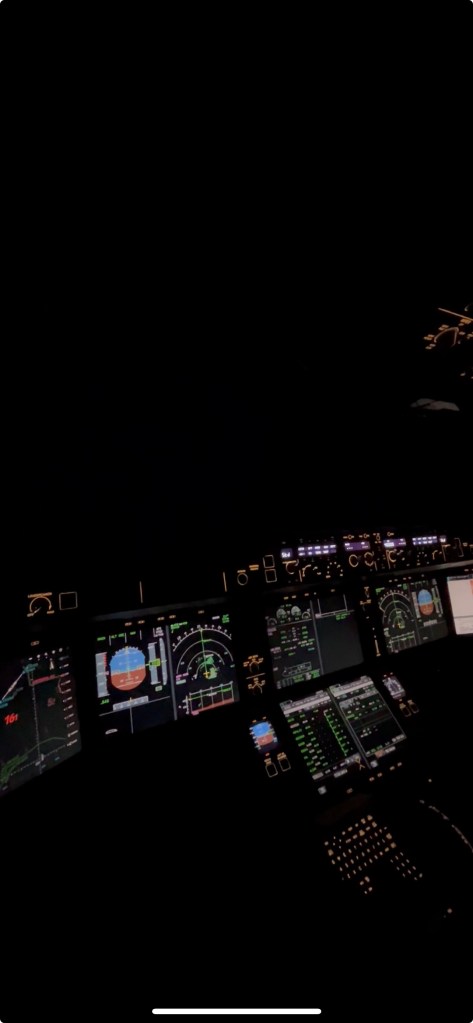 Sobrevolar a 12.200m el Matto Grosso de noche siempre es una experiencia que despierta los sentidos. La oscuridad es infinita sabiendo que allá abajo los pocos aeropuertos que hay no solo están alejados, sino también que la disponibilidad de medios que tienen no es del todo la mejor, aunque sí es justa y legalmente elegible. Esta oscuridad acompañada de una frecuencia de radio que inusualmente está bastante calmada hace que vayamos muy tranquilos sabiendo que tras estas primeras 9 horas y cuarto de vuelo, seguirán otras 3 y media hasta Santiago de Chile sin ninguna necesidad de investigar sobre estos aeropuertos brasileños.