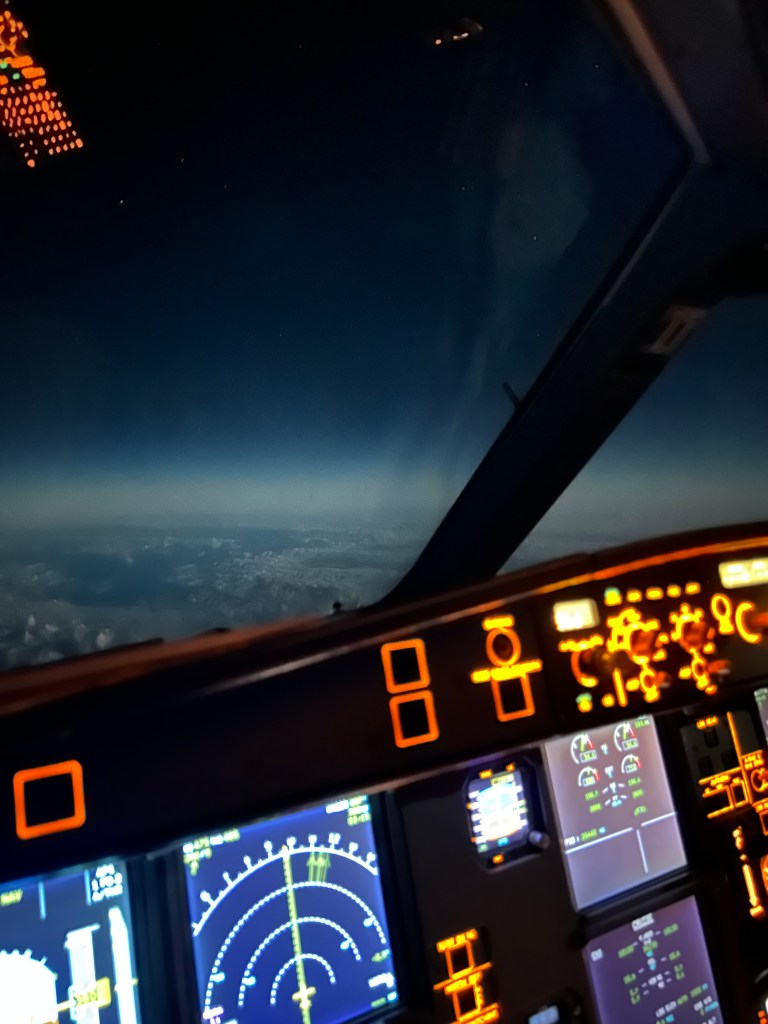 El aeropuerto estaba bastante vacío, con poco tráfico, y nada más salir de la puerta de embarque nos autorizaron casi en línea recta hacia la pista 08R para despegar. Hicimos las pruebas y controles previos al despegue y allí llegamos. Alineé el avión con el centro de la pista mientras por detrás se acababa de poner el sol. Apliqué potencia de despegue y… “vamos a volar”. Una sonrisa se dibujó en mi cara.