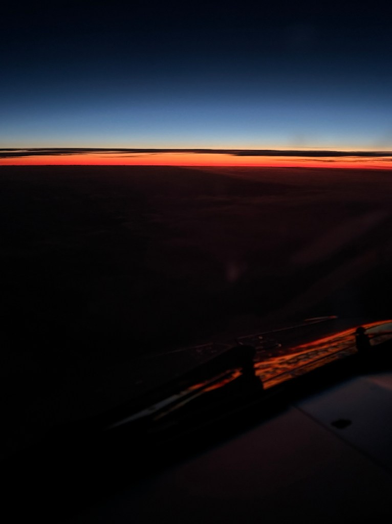 El sol se puso antes incluso de despegar desde México. La pista 05 derecha es muy larga pero siempre me llama la atención cómo, poco antes de alcanzar velocidad de rotación, hay una especie de joroba que hace que en cabina tengamos una sensación rara de sube y baja justo antes de despegar. La noche nos acompañará durante gran parte de la travesía hasta unas 3 horas antes de llegar a la costa portuguesa.